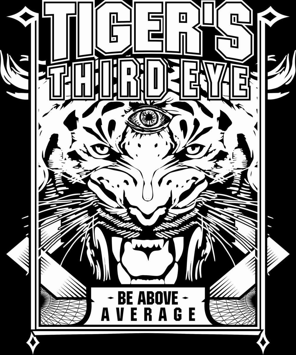 A premium black fleece sweatshirt featuring the "Fearless" design and the Tiger's Third Eye "Be Above Average" design on back in classic black and white.