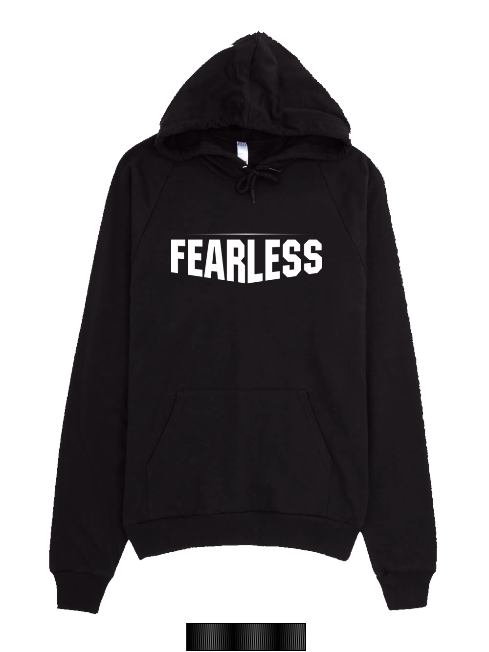 A premium black fleece sweatshirt featuring the "Fearless" design and the Tiger's Third Eye "Be Above Average" design on back in classic black and white.